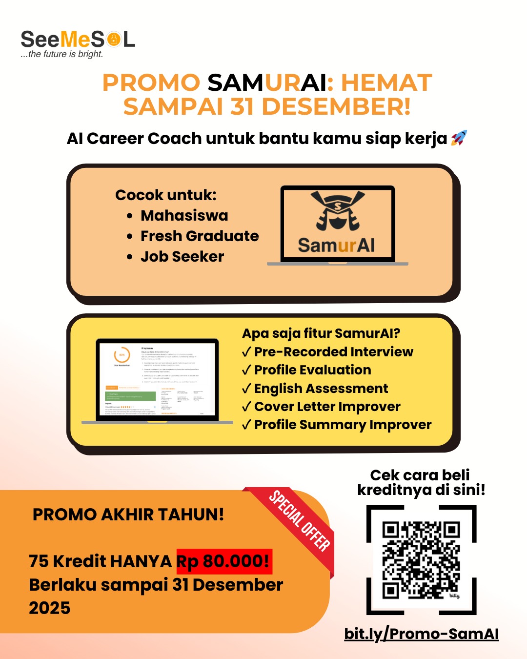 SamurAI hadir sebagai AI Career Coach yang bantu kamu lebih percaya diri dalam proses cari kerja 💼✨