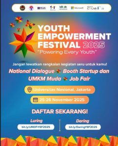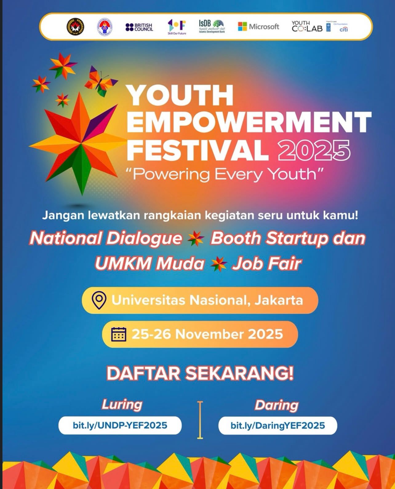 UNDP melalui program Youth Co-Lab dan Skill Our Future mengajak kamu untuk bergabung di Youth Empowerment Festival 2025 dan jadi bagian dari perubahan!